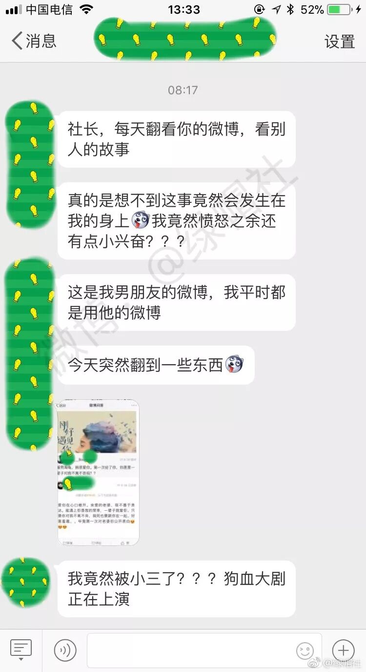 《我平时都是用男朋友的微博,结果无意间看到他微博问答中回答别人的问题,才知道自己被“小三”。》