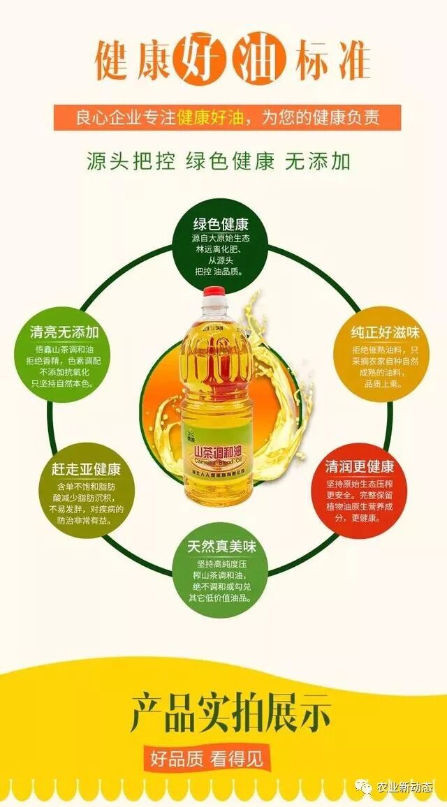 茶油来自大自然,本身有相当高的营养价值,加上茶油自然的生长方式和科学的加工方法,使茶油的品质更自然健康,是《中国食物结构改革与发展规划纲要》中大力提倡推广的食用植物食用油,也是国际粮农组织首推的卫生保健植物食用油。