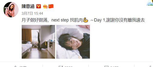看到意涵状态这么好,她经常被问到为什么状态会这么好,意涵在微博上告诉大家:只要保持好的生活習慣都可以有好狀態!