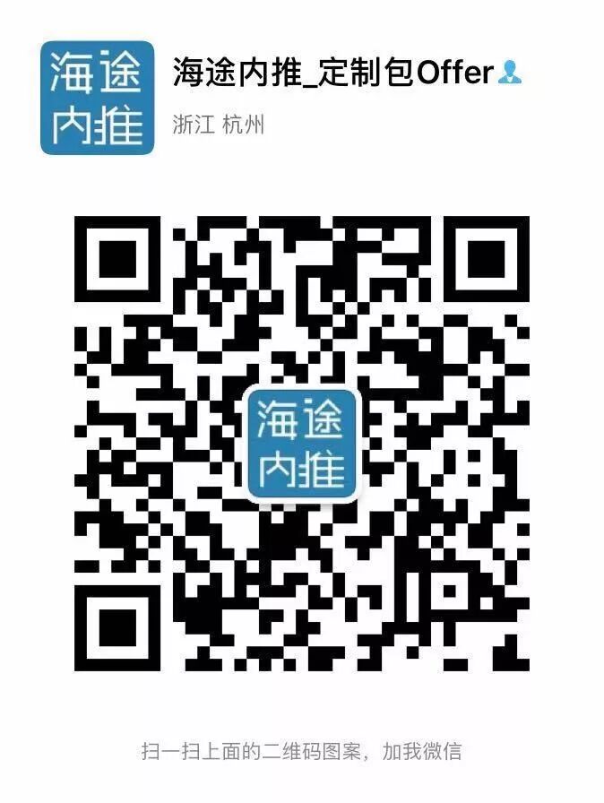 简历投递至海途假期实习计划的201909、10期专属内推邮箱,以上岗位简历筛选后可进行免费内推。还没加入的同学,请关注二维码,回复关键字“假期实习”加入201910期会员,享受10月、11月的免费内推,主要面向留学生及计划留学的同学。