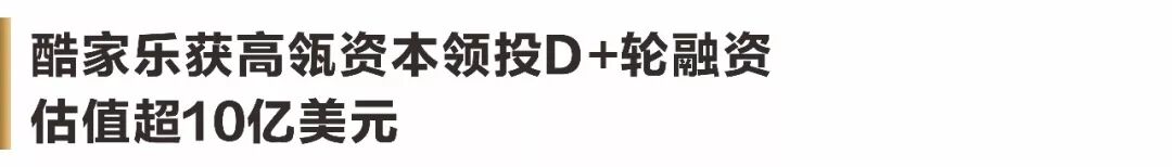 10月25日,“酷家乐”宣布已完成新一轮D+轮融资,由高瓴资本领投,老股东顺为资本、GGV纪源资本等跟投。本轮融资过后,公司估值超10亿美元。本轮融资资金将主要用于加大软件产品的研发投入,提升公司为家居企业及产业链上下游提供数字化解决方案的能力。