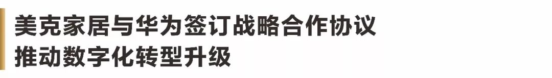 10月20日,美克家居与华为签订战略合作协议,双方将致力于在智慧门店、智慧物流、智能制造等领域加强合作,推动美克家居数字化转型升级。