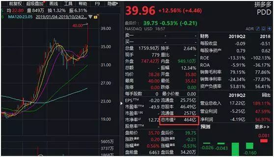 美国当地时间10月24日,拼多多股价出现暴涨,截至收盘,拼多多股价报39.96美元,上涨12.56%,市值增加至464亿美元。与此同时,同样在美上市的京东股价则小幅下跌0.13%,至30.72美元,市值萎缩至448亿美元。