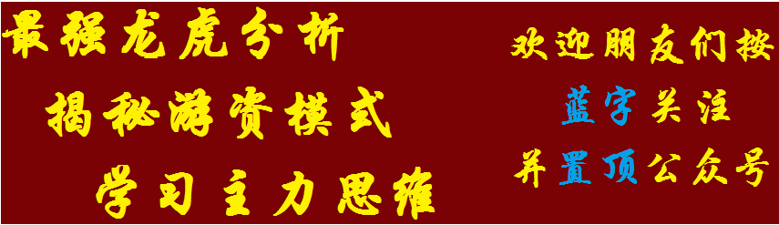 资金才是真理,每日早上8点,龙虎榜解析,和你分享主力动向,寻找市场最强的龙头,吃最大的肉!