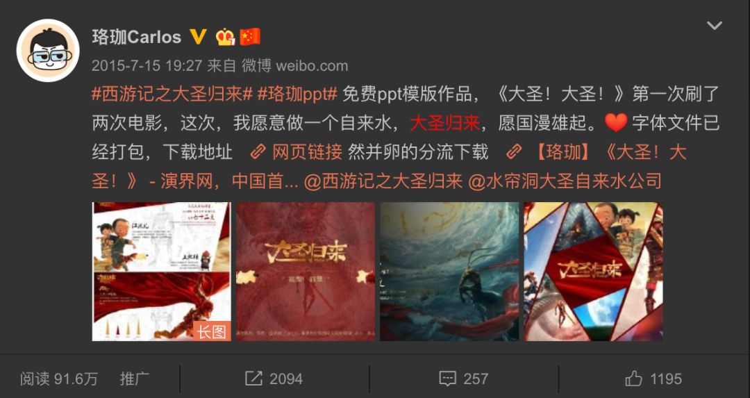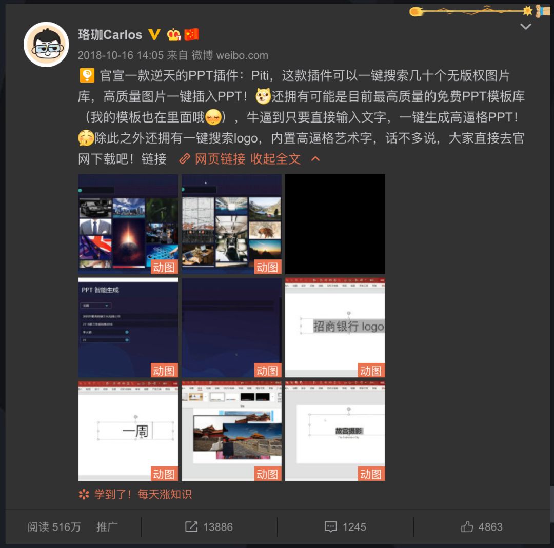 这里面微博的启动量就很重要,需要一个垂直ppt的大号去做启动,同时需要几个百万级的大号帮忙转发。