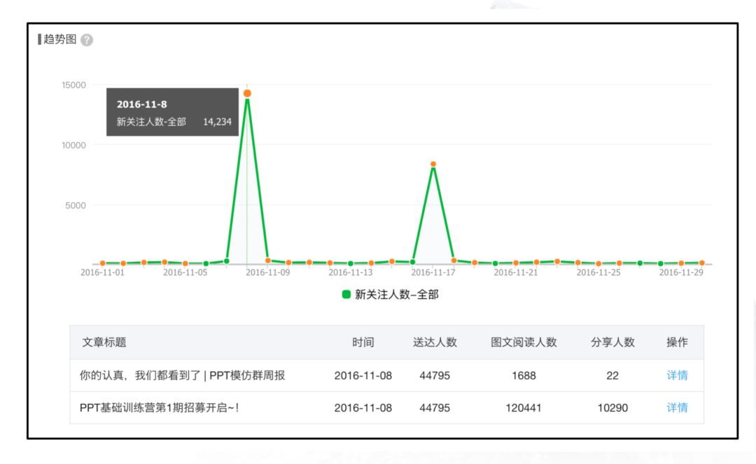推广的第一天,我们的一个新注册的公众号小号粉丝从0暴涨到了10W;