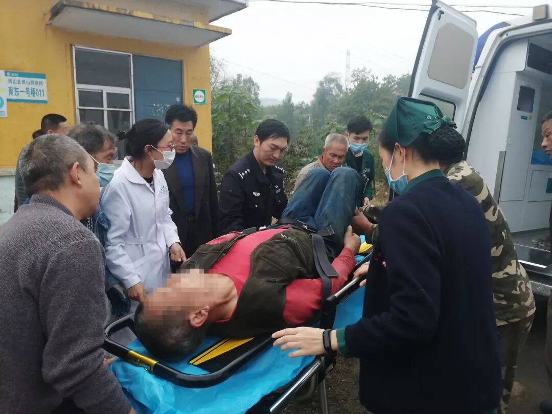 现场初步确认老马摔伤了腰部,且伤势较重,王西凯一边让周围群众对老马进行安抚,保持其意识清醒,一边通知120急救中心,并驾驶警车去附近村卫生所接来医生,先对2名伤者进行初步包扎止血。120急救车到达后,众人将伤者从桥下合力抬上救护车送医治疗。