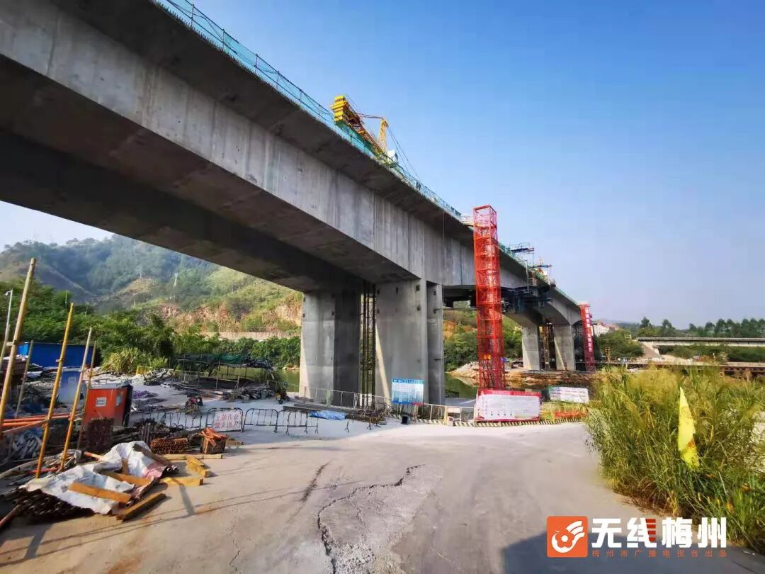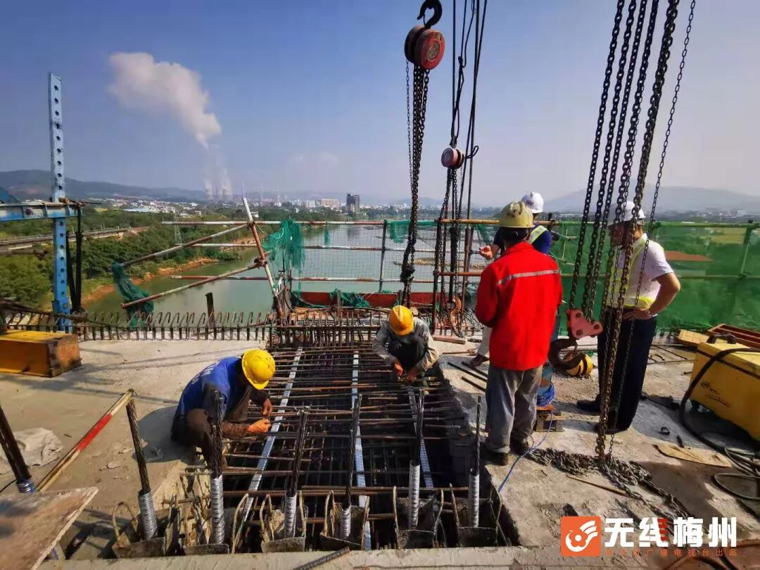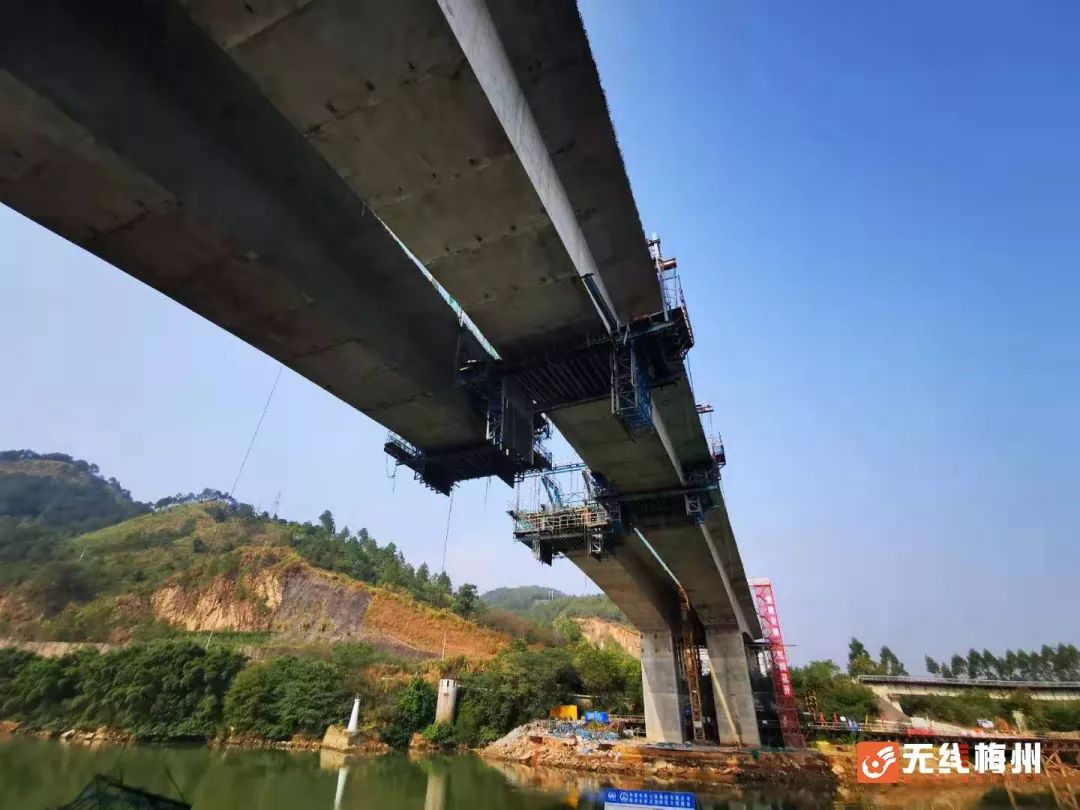 目前,梅江大桥左线也正在有计划推进当中,预计12月中旬实现连续刚构合龙。