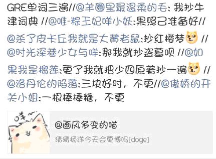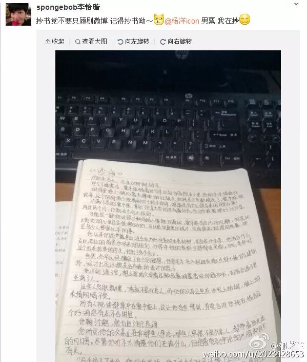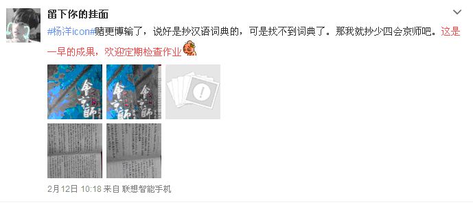 关于抄书的由来,还得追溯到遥远的2015年,那年的某天羊在拍戏羊圈一片平静,无聊的羊毛们就想找点事做,不知怎的,天真的毛们就萌生了打赌猜测杨洋是否更博的想法,于是转发的羊毛纷纷下注:如果哥哥今天更博了,我就······