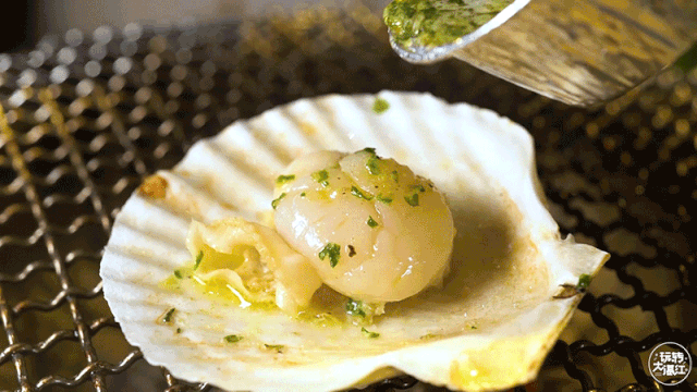 除了日式烧肉,店里的烧海鲜也是招牌,还会有专门的海鲜酱搭配。配上这个秘制酱,扇贝更为鲜美。