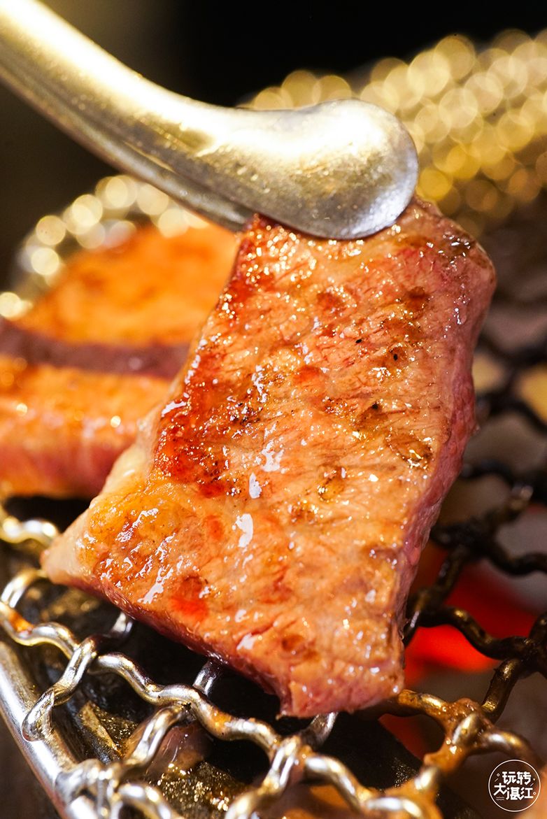 M9的油脂会更多一点,烤的时候油脂在表面滋滋作响,只要我吃得够快,脂肪就发现不了我!闭上眼睛,还能感受它在味蕾开花。因为这份肉烤法比较讲究,所以点了它的会配1个烧肉小哥哥。