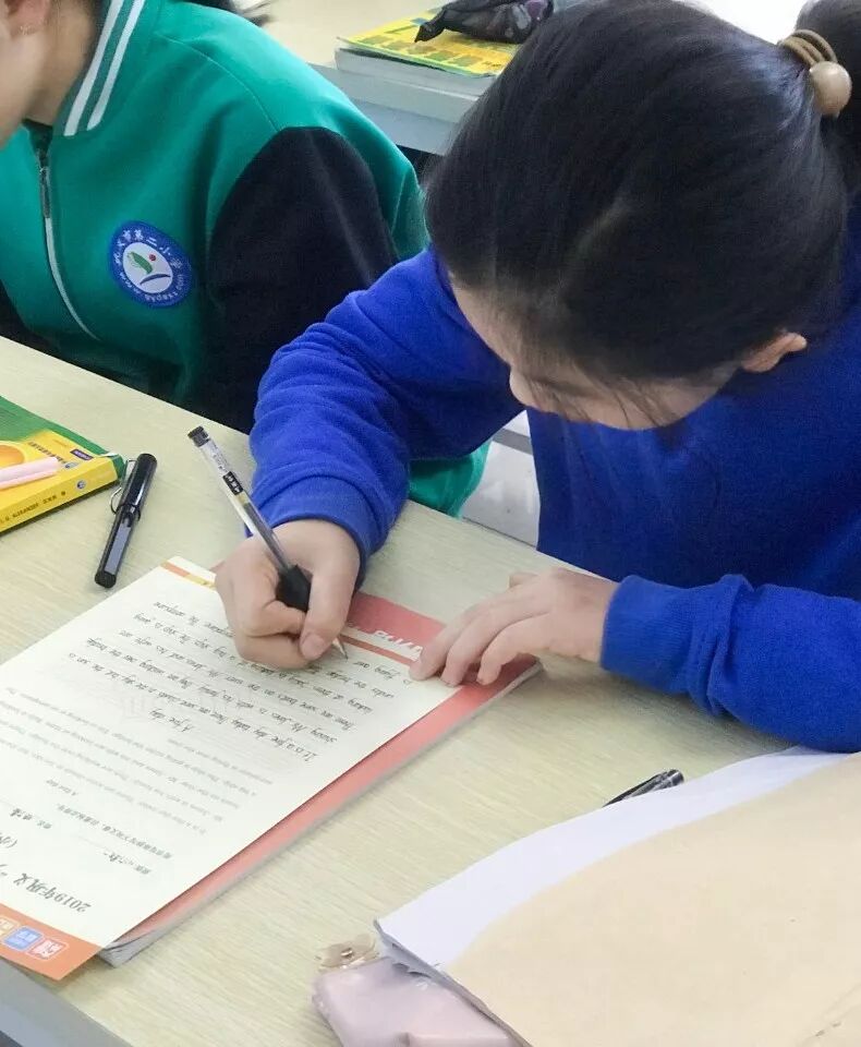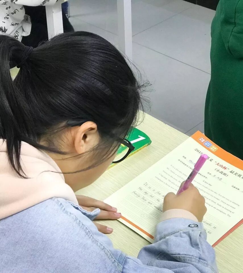 书写进行时本次比赛小低组学生书写字母单词、小高组书写句子、初中组则书写小短文,在英语老师们的指导鼓励下,每个学生都热情响应,积极参加,练习书写的同时,更能感受到英语的文化魅力。
