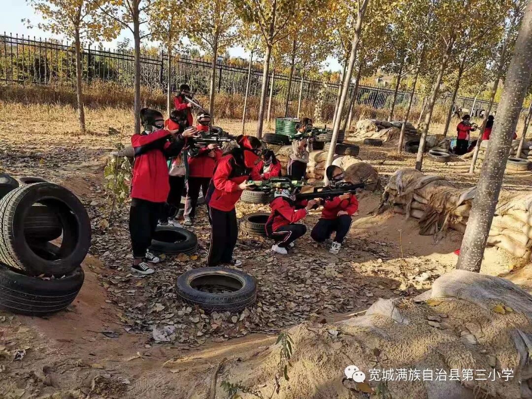 刺激战场上孩子们模拟军队作战训练,隐蔽、攻击、装枪、上膛,一个个俨然真正的战士,威风凛凛。