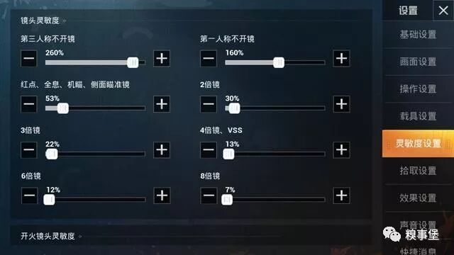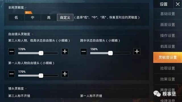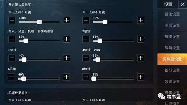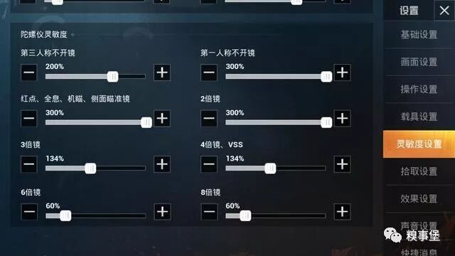 3、灵敏度设置:可根据手机机型和操作手法的不同在此灵敏度基础上上下浮动3到7个点