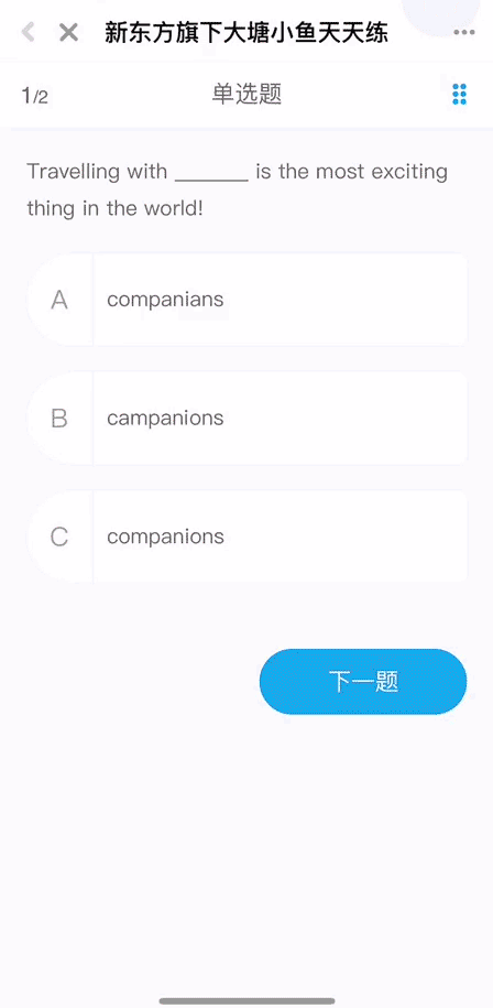 3、课后测评+报告,精准了解学习效果每节课后,会有对应的练习题: