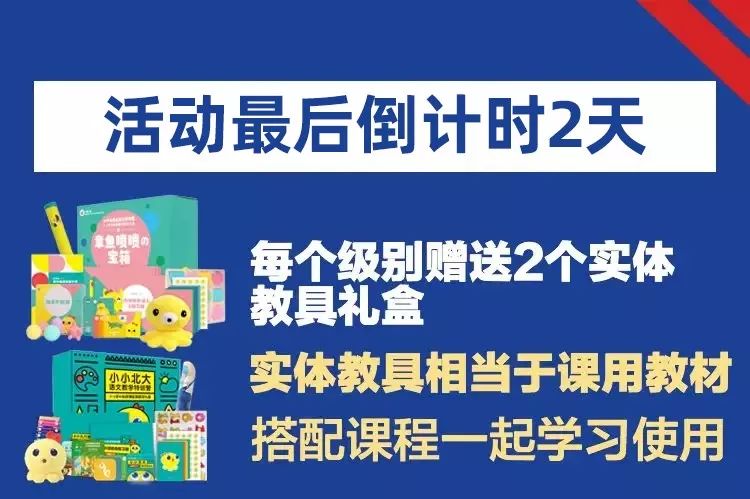 最后2天,每个级别我们还赠送2个每个重达5斤的配套实体教具礼盒,相当于上课用的教材,教具礼盒搭配课程一起使用。