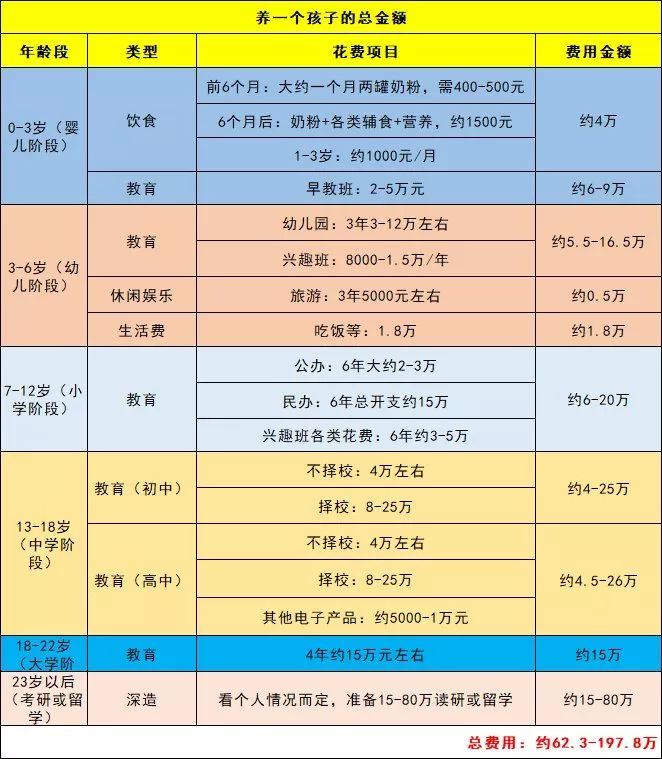 有妈妈就曾经算过教育费用,最后得出结论:养大一个孩子最少要花60万人民币,而这还是最基本的开销。