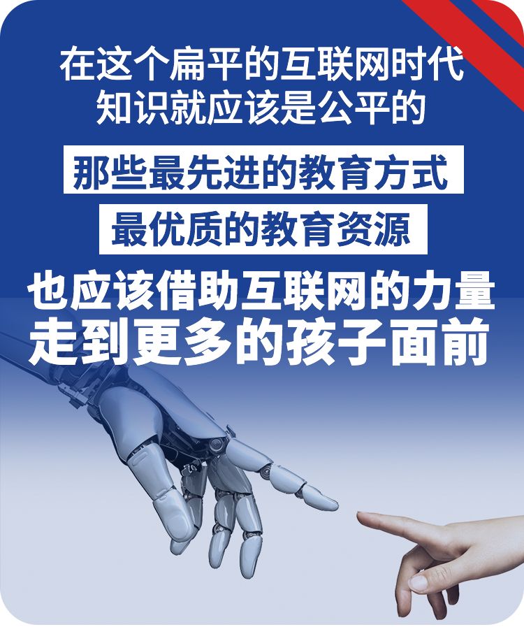 然而我一直相信,在这个扁平的互联网5G时代,知识就应该是公平的,那些最先进的教育方式,最优质的教育资源,最优秀的老师都应该借助互联网的力量,走到更多的孩子面前。