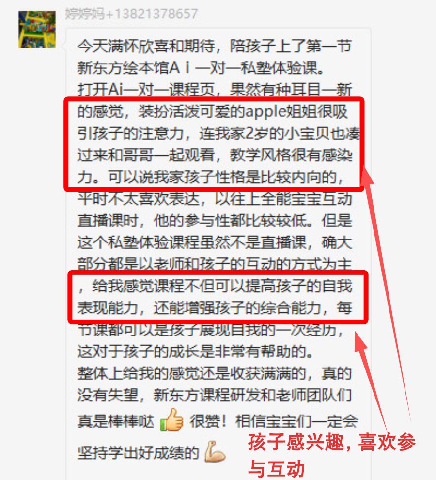 2、教学方法和质量。通过智能化AI的打分系统,让老师为孩子取长补短,大大提升了孩子学习的效率,让其有更多的时间去培养“考试能力”之外的兴趣。