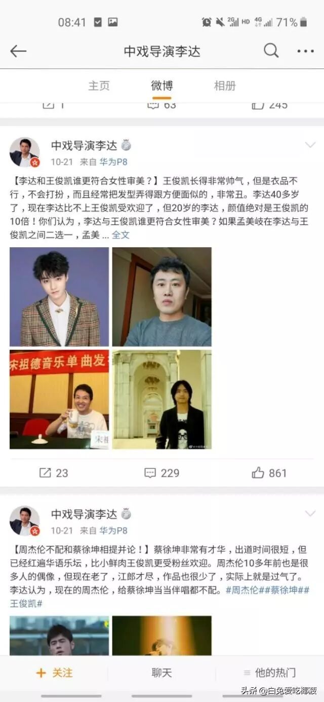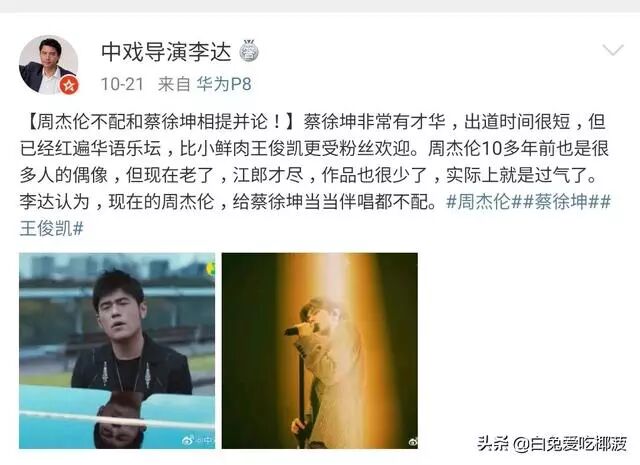 史诗级蹭热度,中戏导演李达说周杰伦不配和蔡徐坤相提并论,自己比王俊凯帅20倍,肖战被夏凡骂是应该的……