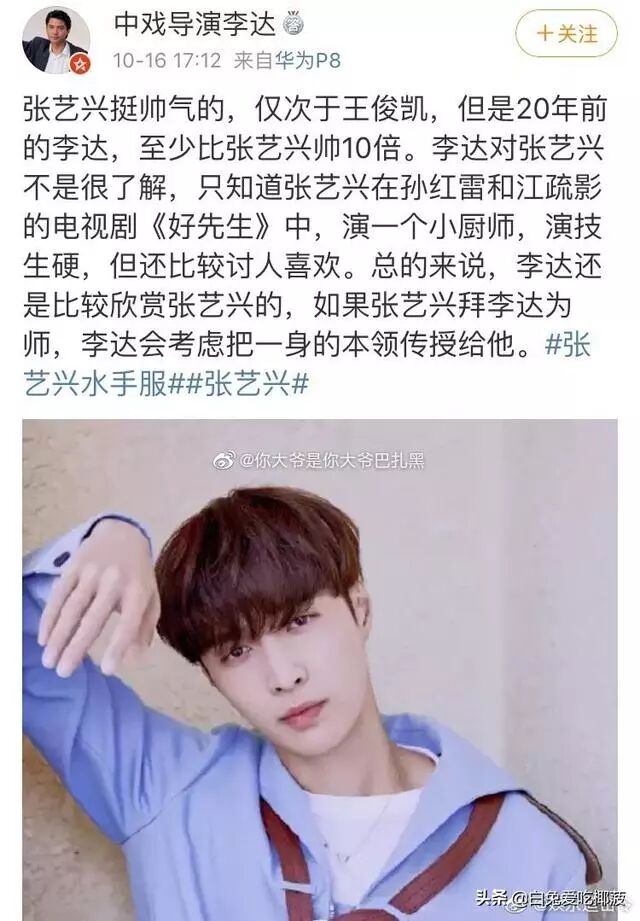 请问李导,蔡徐坤和肖战谁更有才华?你会请谁在你的大片里当男一号?