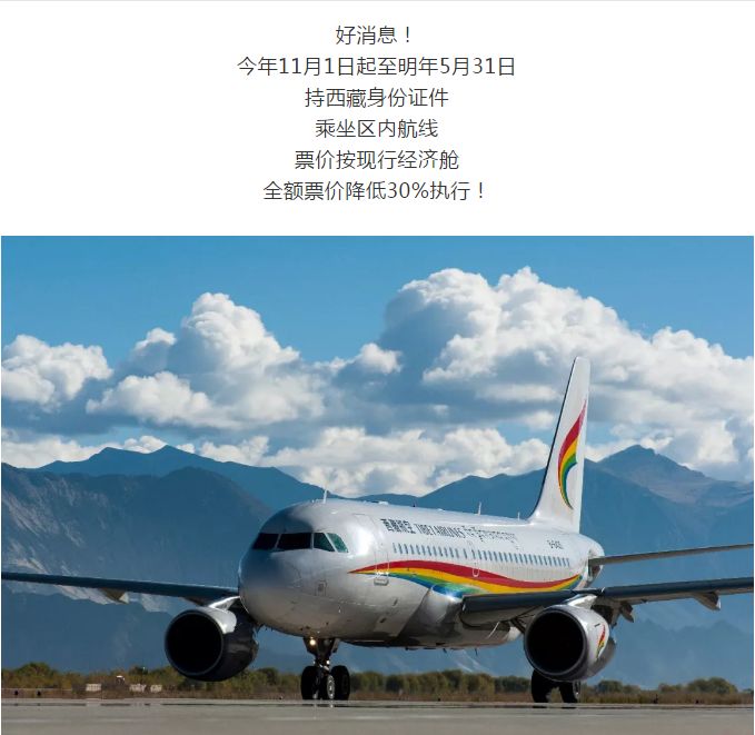 最新!持西藏身份证件这些航线可打折,来看执行时间和线路→