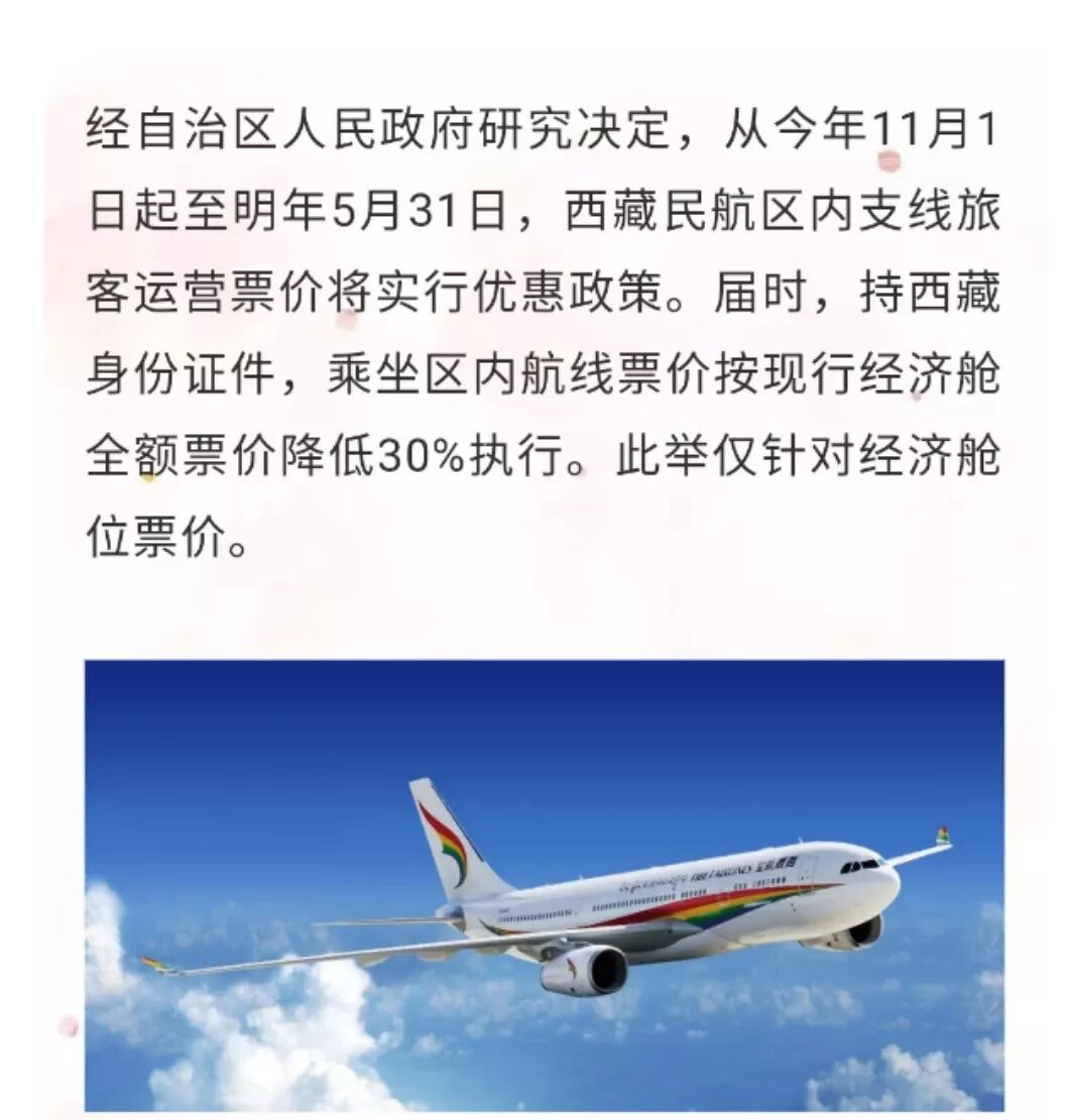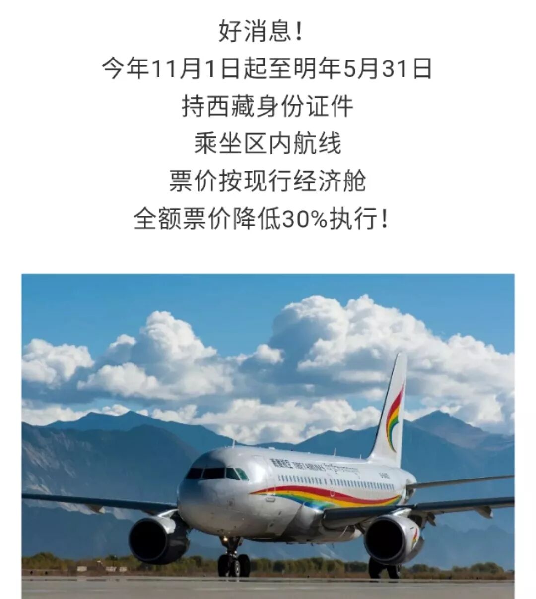 【关注】持西藏身份证件这些航线可打折,来看执行时间和线路→