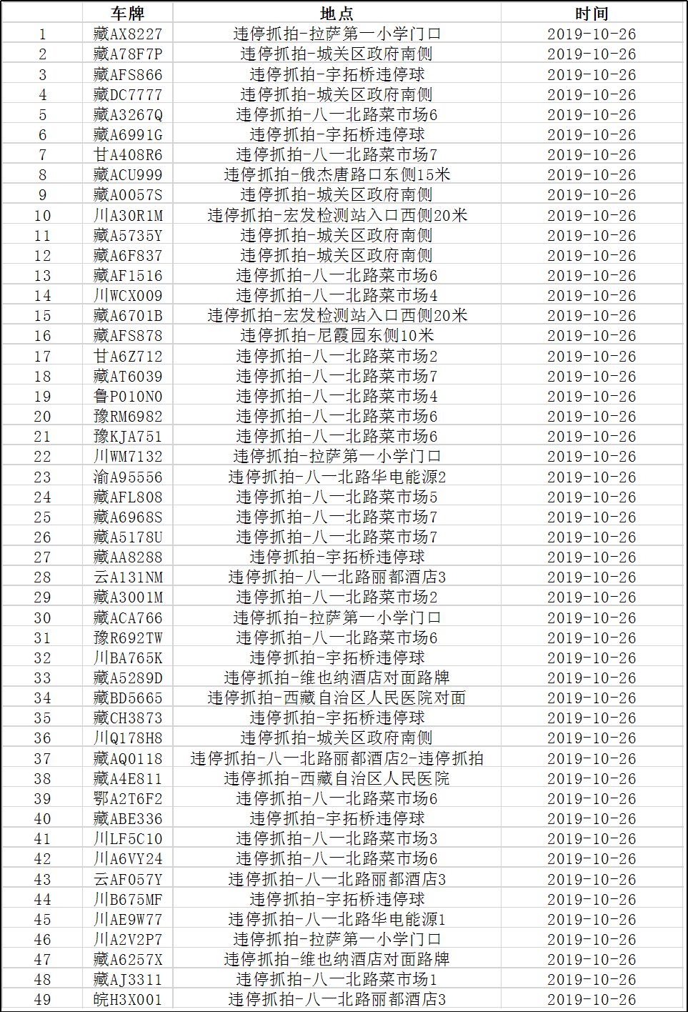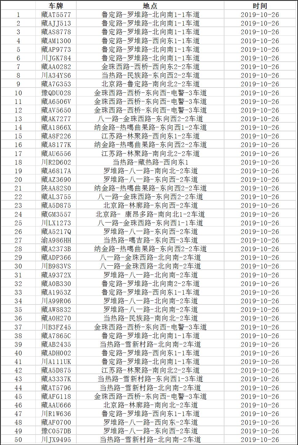 速速围观丨拉萨交警曝光10月26日抓拍违法行为