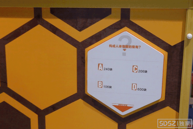 少儿图书馆体验区内相应类别的图书架上,设计了趣味问答小知识,让孩子在观看图书之余有巩固的过程。