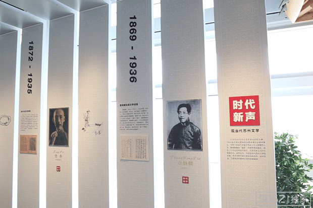 入口右手边沿回廊一路走过去,以时间为脉络的苏州各朝代文学家介绍一目了然。