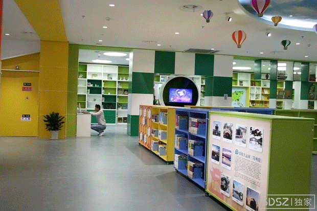 从图书馆南入口的少儿图书馆进入,便是大厅,一楼设置有少儿图书馆主题体验区与亲子阅读区,主要是供0-12岁宝宝阅读学习。