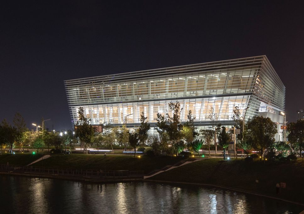 外立面则是由5000多块玻璃组成,让整个图书馆通透敞亮,内部采光度极好,黑夜里有如江南水乡河畔的一颗璀璨珍珠,超惊艳!