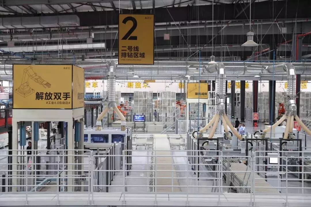肉眼可见,从智能立体原料仓出发,每一块板件经历开料、封边、打孔、分拣、打包……全程不落地,不经人手。