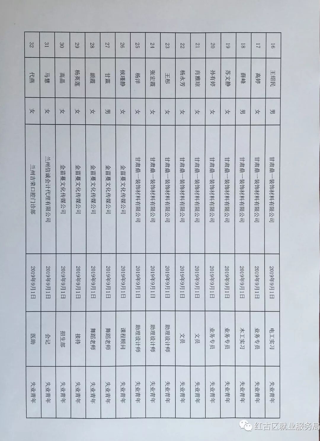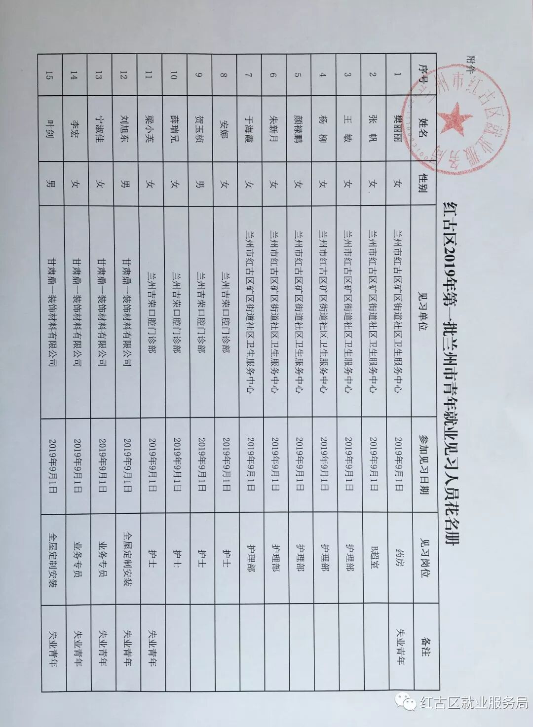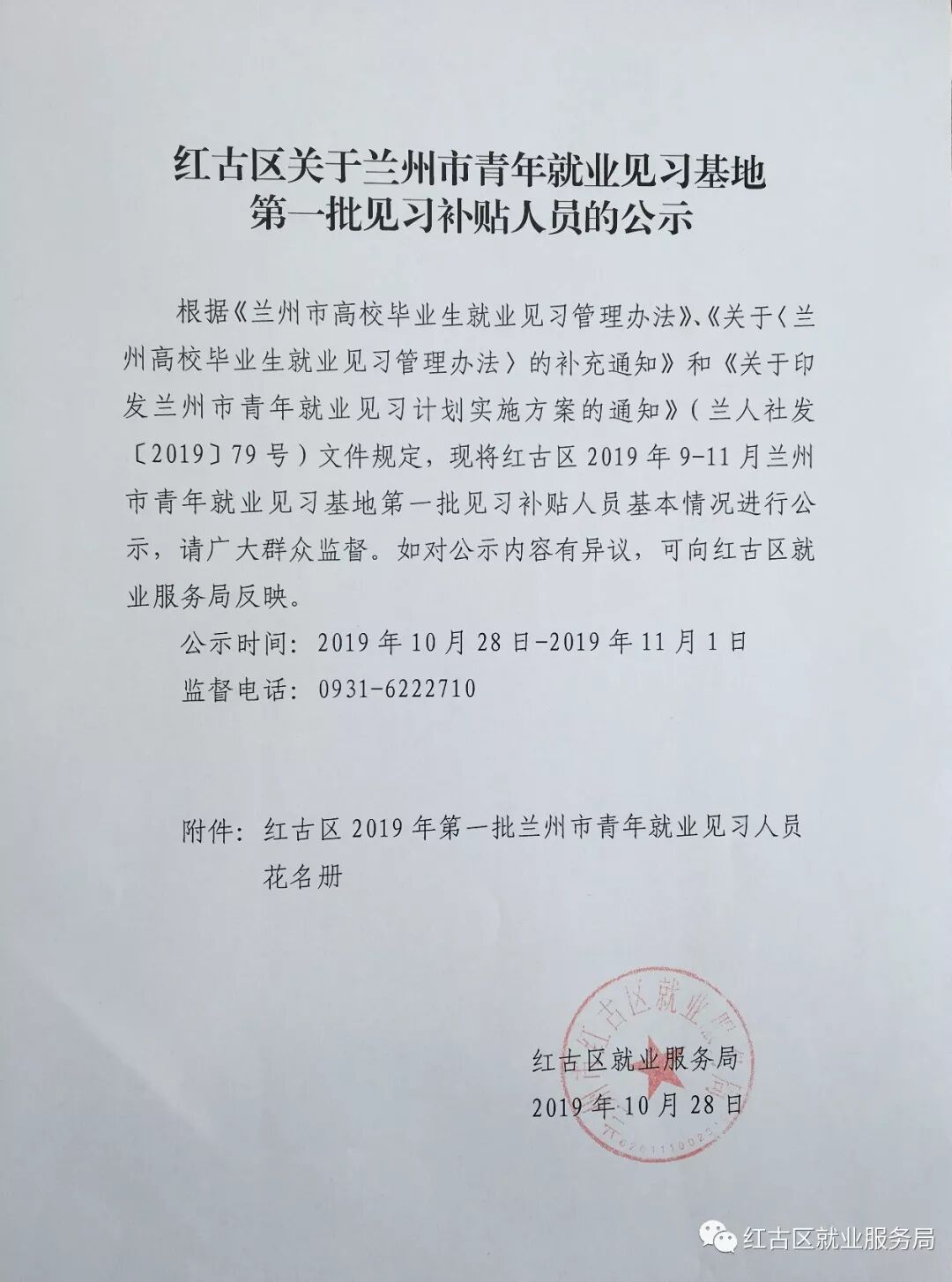 红古区关于兰州市青年就业见习基地第一批见习补贴人员的公示