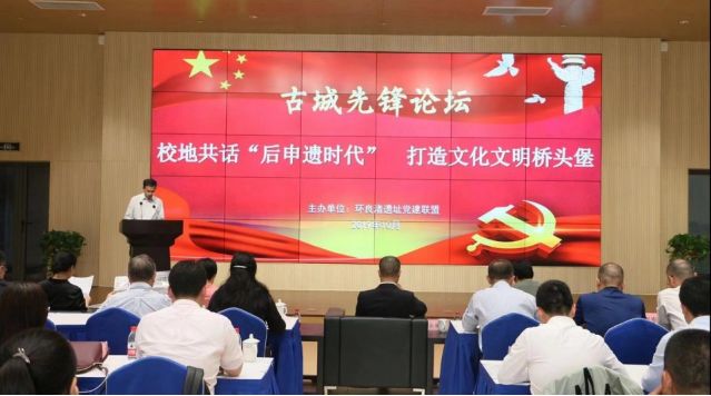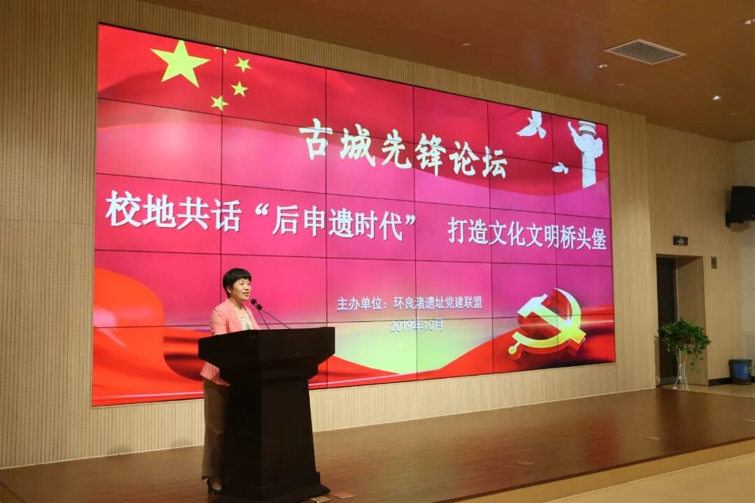 调研走访结束后,召开“古城先锋论坛”,校地共话“后申遗时代”,探讨打造“文化文明桥头堡”。杭州良渚遗址管理区党工委书记、管委会主任张俊杰,余杭区委常委、组织部部长朱红丹参加。杭州良渚遗址管理区党工委副书记、管委会副主任陈寿田主持论坛,与会遗址区村社区和高校代表们进行了热烈的交流发言。