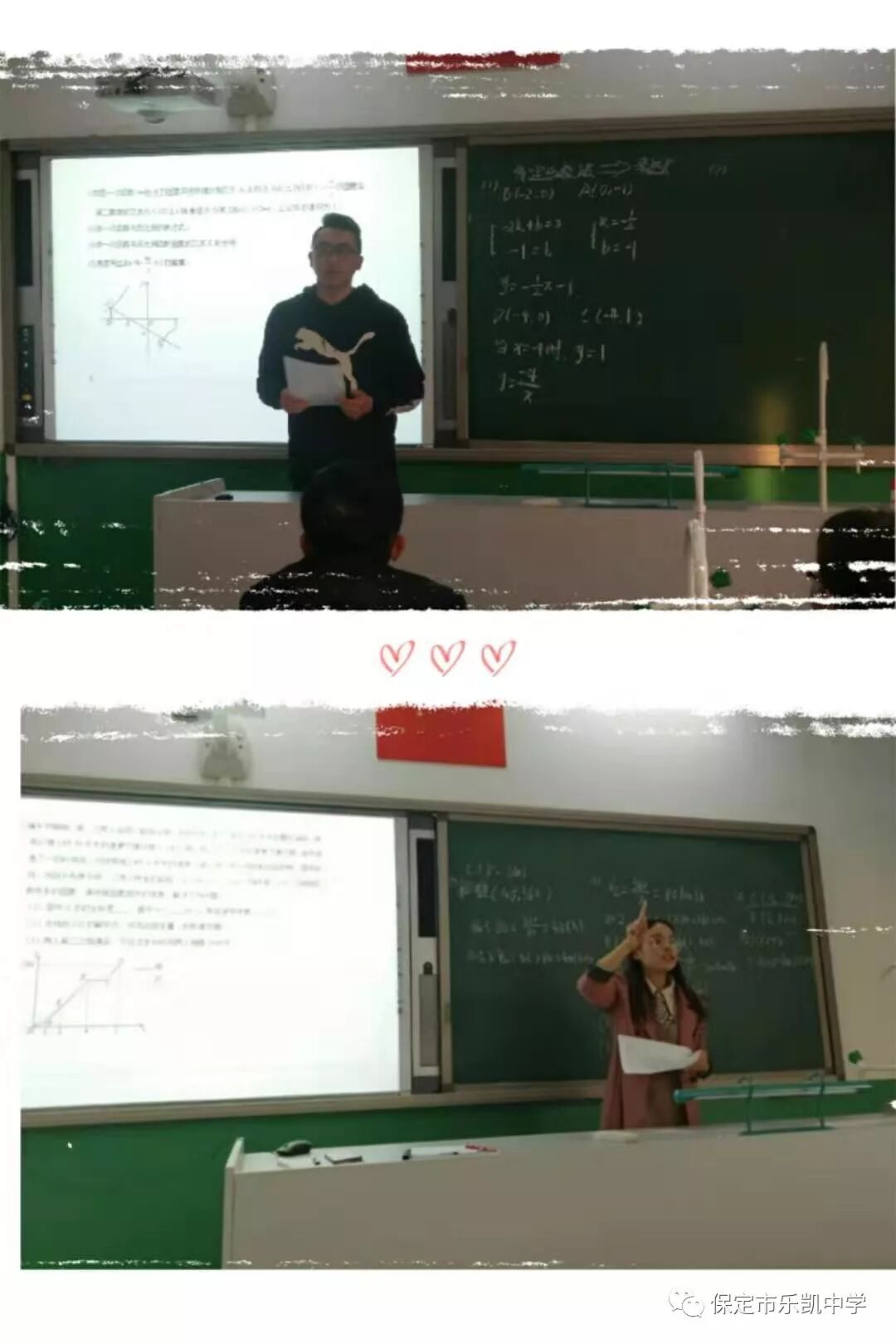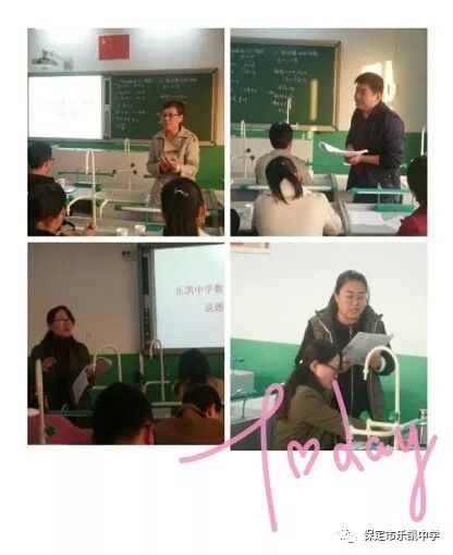 六位青年教师的精彩解说让在场的教师们无不赞叹不已,刘翠敏老师、徐玉芹老师、龚秀娟老师、白淑芬老师和马翠敏老师纷纷谈听后感受。一致赞到咱乐凯中学真是长江后浪推前浪,后生可畏啊!同时也抛砖引玉的指出变式的方向和依据需要更明确一些。