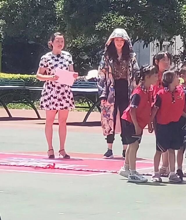 另外一边,热巴和王迅来到学校看孩子们一起玩耍,热巴看起来很怕晒,戴上了帽子。
