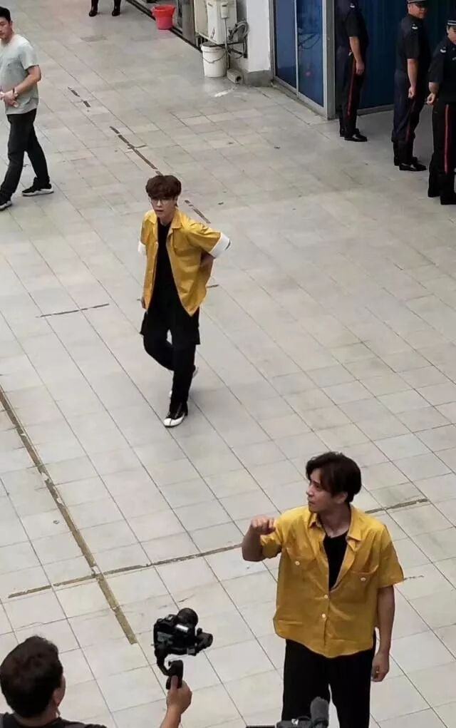 可以看到小绵羊张艺兴边走边用衣服把手擦干,而罗志祥则继续往前走。