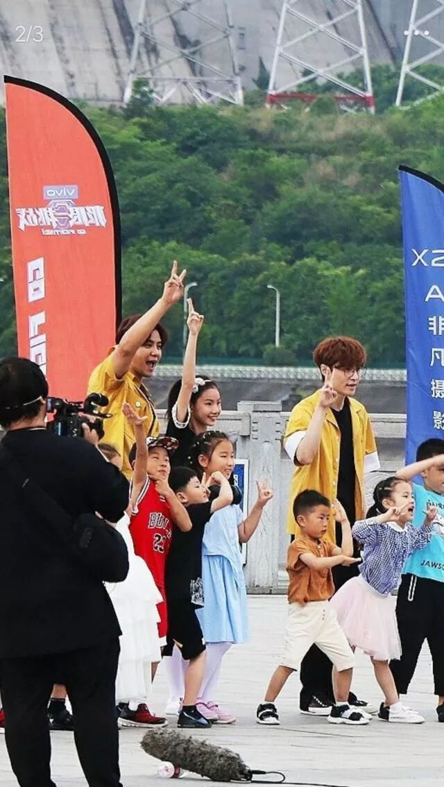 张艺兴和罗志祥还不忘和孩子们合影,还和大家一起比剪刀,看起来刚才失败的阴影早就烟消云散了。