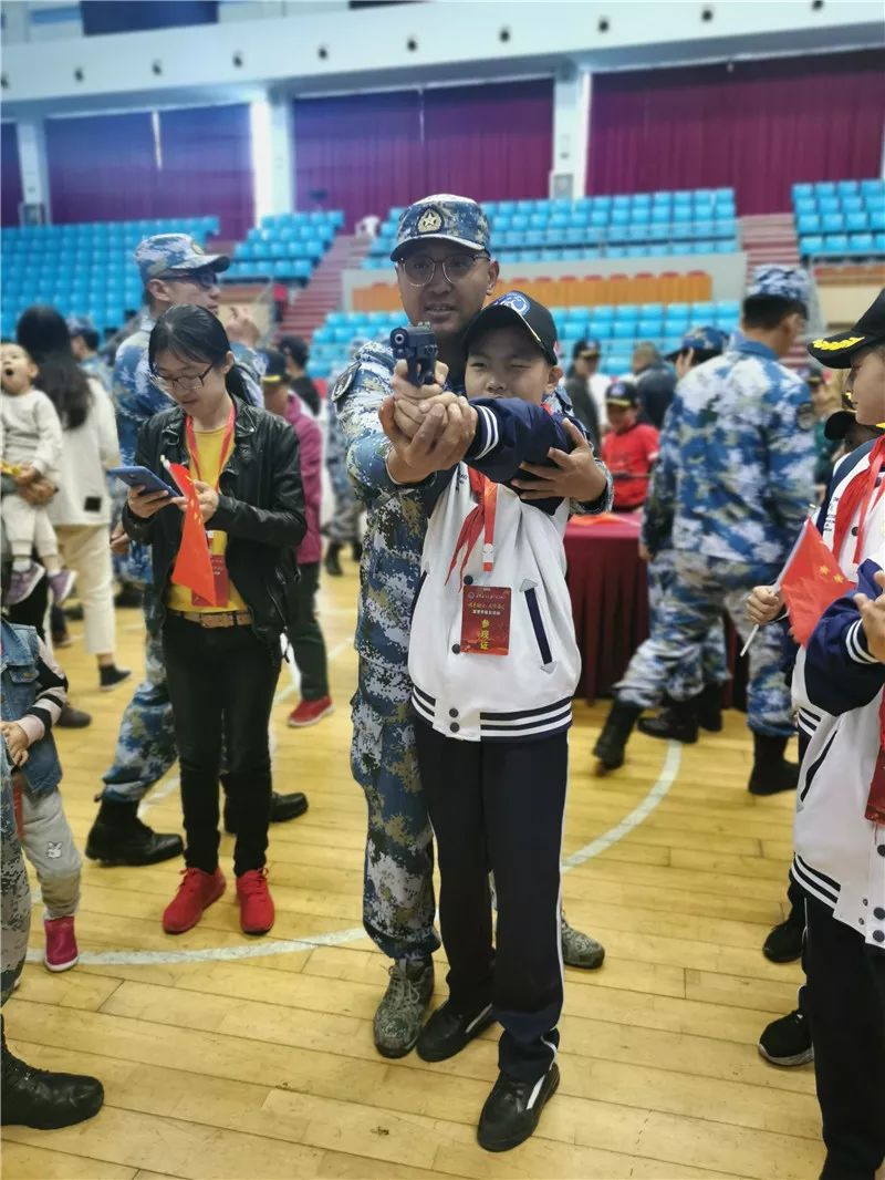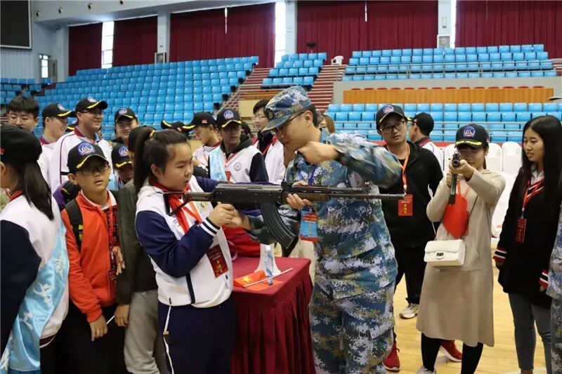 接着解放军叔叔带领同学们参观在文体馆开展的枪械展示活动,同学们兴致高涨,纷纷拿起枪械合影留念。在院史博物馆内,一行行散发着战场硝烟的文字史料,吸引着同学们的目光。听着讲解员讲述学校发展历史和革命先烈的故事,一股浓烈的爱国热情也在同学们心中油然而生。