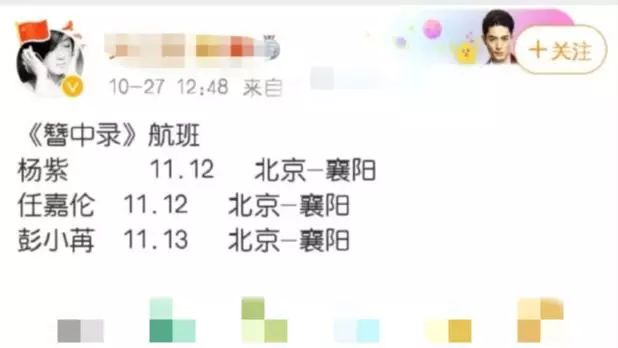 为了增加这份名单的可靠性,有网友也贴出了近期几位明星的航班图,图片中显示,杨紫、任嘉伦、彭晓冉等演员近期都有从北京到襄阳的行程,看起来这个网传阵容的可信度还是比较高的,除此之外该爆料也称该剧将改名为《青簪行》,在11月中旬正式开机。
