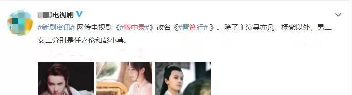 今天,又有网友爆料了该剧的主演阵容,之前网传传的杨紫和吴亦凡也毫无意外的出现在这份名单上,除了这两个男女主演之外,演员任嘉伦和彭晓冉将在剧中分别饰演男二和女二,檀健次和黄俊捷也均在这份名单中。