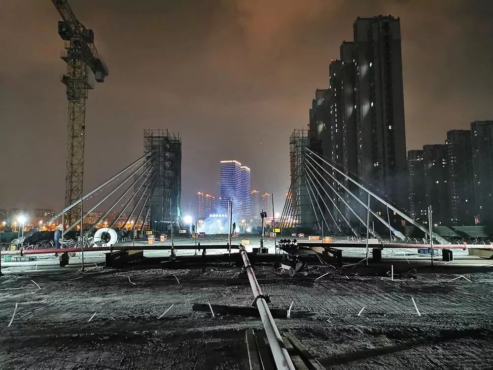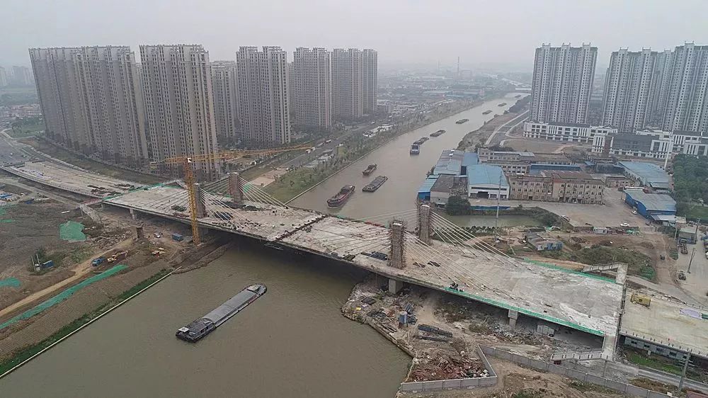 由于张家港河是三级航道,为保证航道的通畅,大桥采用了挂篮施工。主桥共有4个索塔,每个索塔有7根斜拉索,全桥共28根斜拉索。