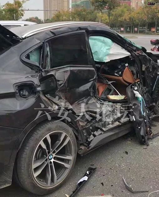 六安寿春路大桥一辆宝马与大货车猛烈相撞!