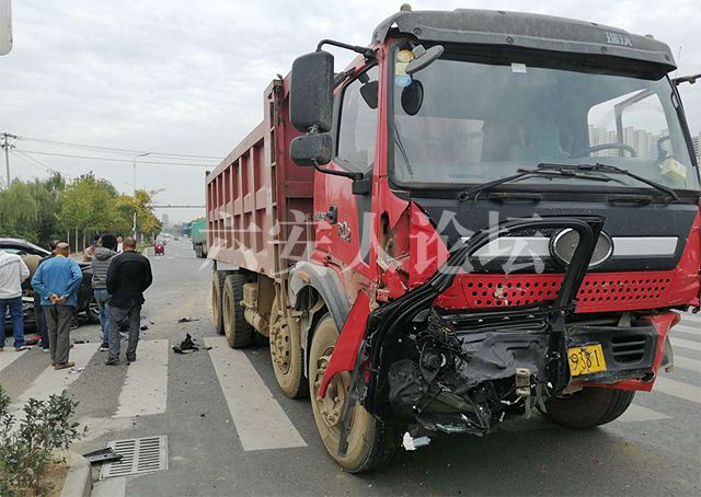 10月27日中午12点左右,在六安寿春路大桥,一宝马与大货车猛烈相撞!宝马车受损严重,人员受伤情况不明!车祸猛于虎,大家要远离大货车!