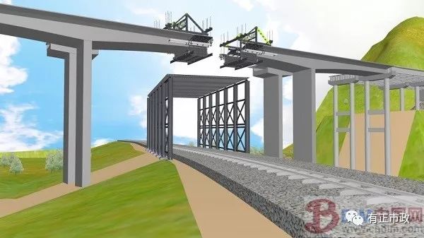 跨越铁路线桥梁施工段为避免对列车行驶造成干扰,同时避免铁路接触网高压电压(2.75万伏)对挂篮施工的影响,确保通车及施工安全。本项目通过BIM技术设计在跨线区域设置沿铁路线的安全防护棚,对铁路线路实现封闭式防护。防护棚采用混凝土基础、钢管支撑柱,顶棚设置绝缘材料,充分保障了施工及通行安全。