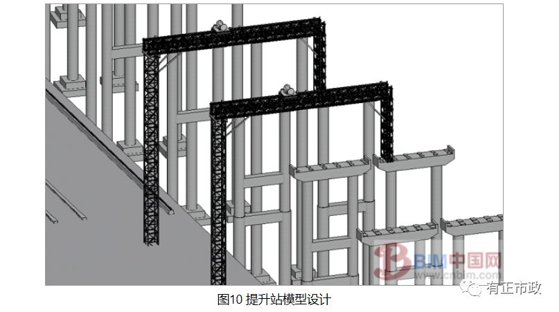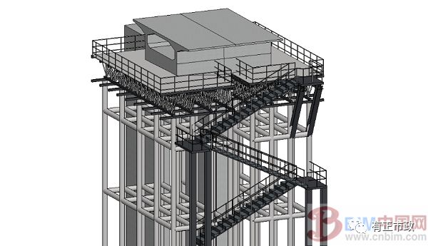 本工程跨铁路线施工段采用悬浇施工法,悬浇段0#块施工时,由于施工高度距离地面30多米,安全施工是确保工程顺利进行的前提条件,本项目利用BIM技术对0#块采用三维建模手段,合理设计了施工平台及防护栏杆、临时施工楼梯的空间布置,并验算符合安全要求。
