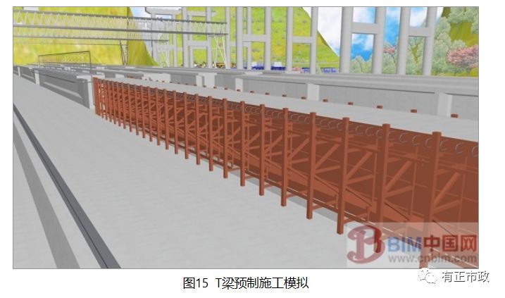 施工模拟主要表现工序及工艺两方面,为保证工程质量,本工程以BIM技术为依托,采用工序、工艺模拟施工进行三维技术交底,利用MicroStation软件的三维可视化功能进行三维动画模拟。由于T梁制作工艺复杂,而且T梁的质量好坏直接影响桥梁结构稳定性、安全性和美观性,故T梁制作质量控制需做到精细化;架桥机架梁施工是本工程质量控制的重点,提高T梁架设精度、架桥机行走移动的安全控制等,通过BIM技术将工程施工中可预见的和不可预见的进行三维施工模拟,为项目提供了极大的技术支持。