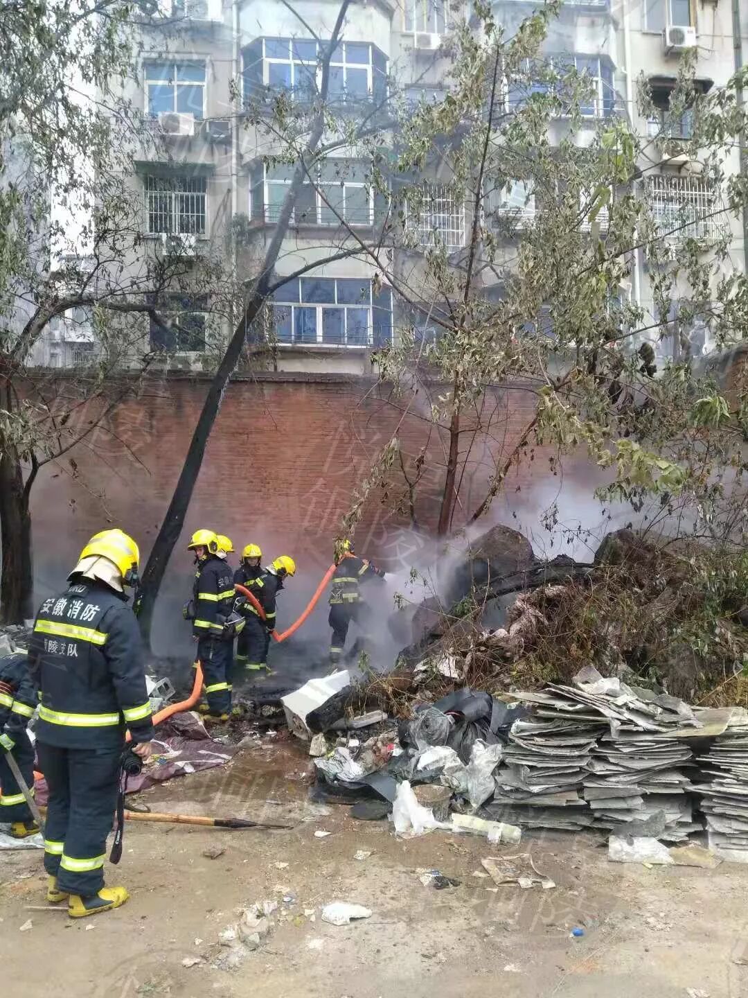 昨天上午九时许,有色某单位大院子里北侧围墙墙根下多年来堆积的破沙发、枯树枝等易燃杂物不明原因起火,由于入秋以来干旱严重、天干物燥,火势很快扩大,大量易燃物迅猛燃烧,熊熊大火腾起十几米高,几乎达到围墙外一栋居民住宅的楼顶,并烧着两棵活树!该住宅离此围墙只有一个小院子的距离,炙热的火焰将三楼、四楼两户人家阳台共四扇窗玻璃烤裂!还有二楼一户人家发现大火扑来,赶紧收取阳台上衣物并关窗子,结果手背被高温气浪和热辐射瞬间烤伤!幸亏该处居民及时发现报警,消防人员火速赶到,很快将大火扑灭,避免了更大的后果发生!随后,派出所民警对受损户的赔偿事宜进行了协调,公平合理解决了赔偿纠纷,并督促该单位用挖机将该处遗留垃圾进行了清除,排除了隐患。当前天气持续干旱,火灾危险等级较高,提醒各单位和广大市民群众一定要提高警惕注意防火,特别是要经常性认真开展检查,消除各种火灾隐患!(@安平)