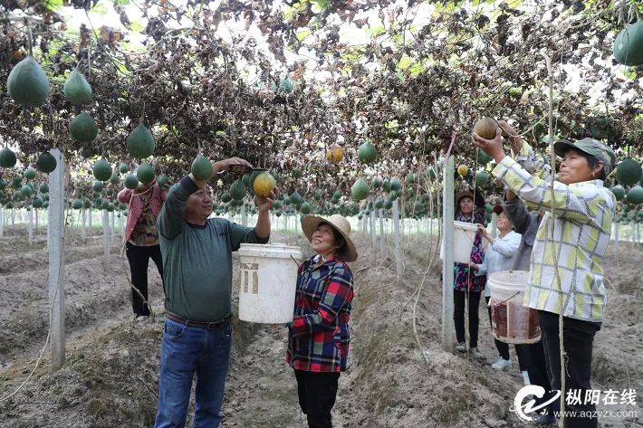 眼下种植户们忙着收获瓜蒌子供应市场,瓜蒌丰收有效带动当地百姓增收致富。(@枞阳在线)
